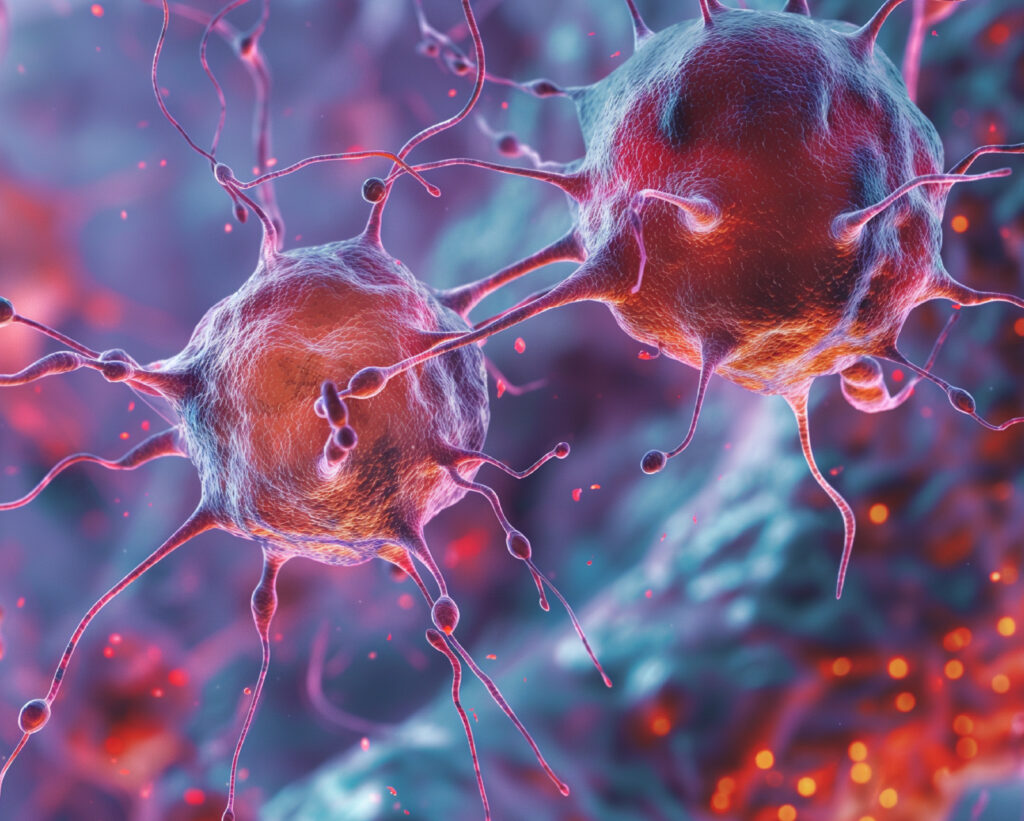 Natural Killer (NK) cells are a type of immune cell that can autonomously attack infected or mutated cells without instructions from other cells. They are the “first responders” in our immune system.